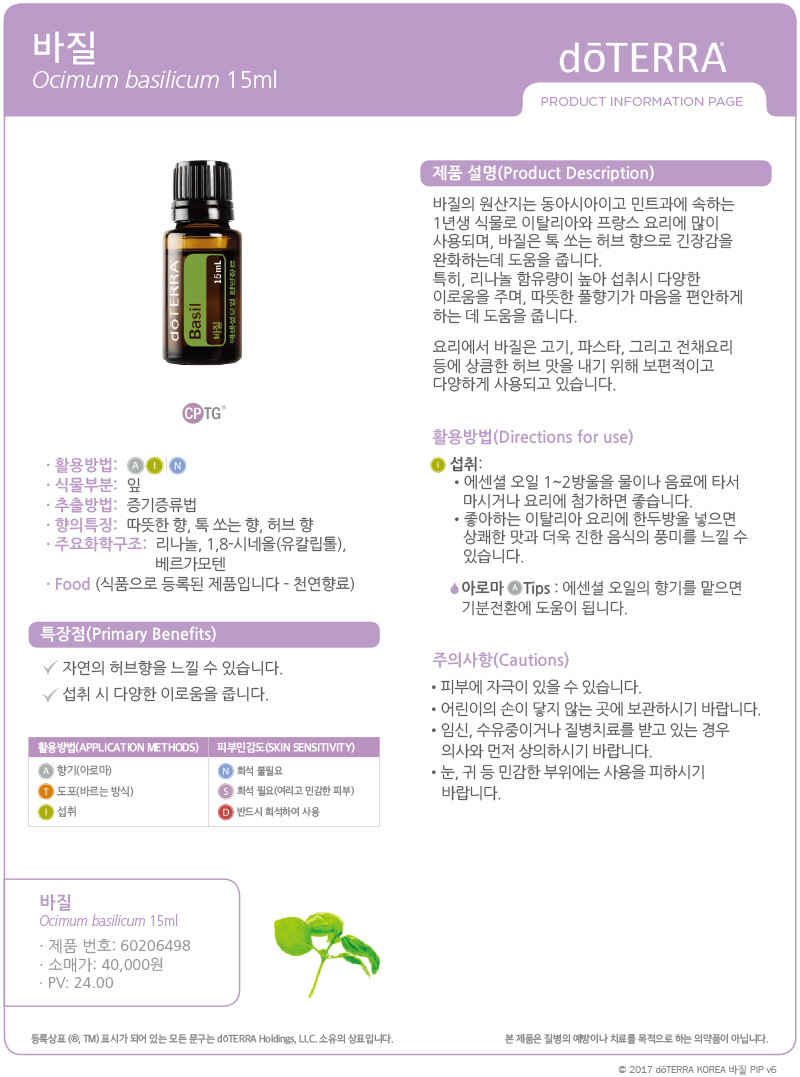 - 에센셜 오일 1~2방울을 물이나 음료에 타서 마시거나 요리에 첨가하면 좋습니다.