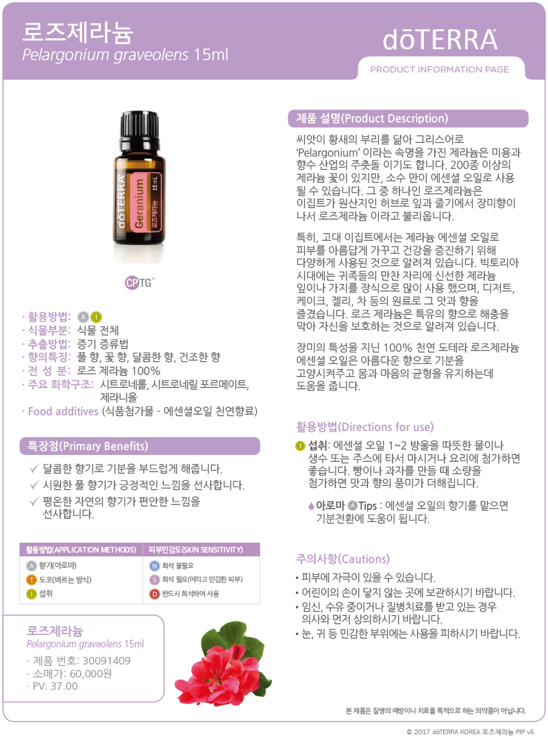 장미의 특성을 지닌 100% 천연 도테라 로즈제라늄 에센셜 오일은 아름다운 향으로 기분을 고양시켜주고 몸과 마음의 균형을 유지하는데 도움을 줍니다.
